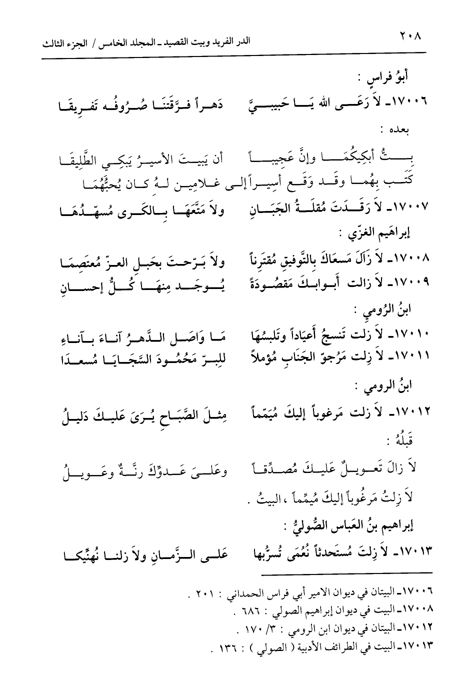 17006 - البيتان في ديوان الأمير أبي فراس الحمداني: 201.