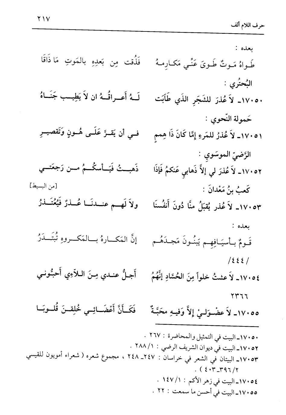 17052 - البيت في ديوان الشريف الرضي: 1/ 288.