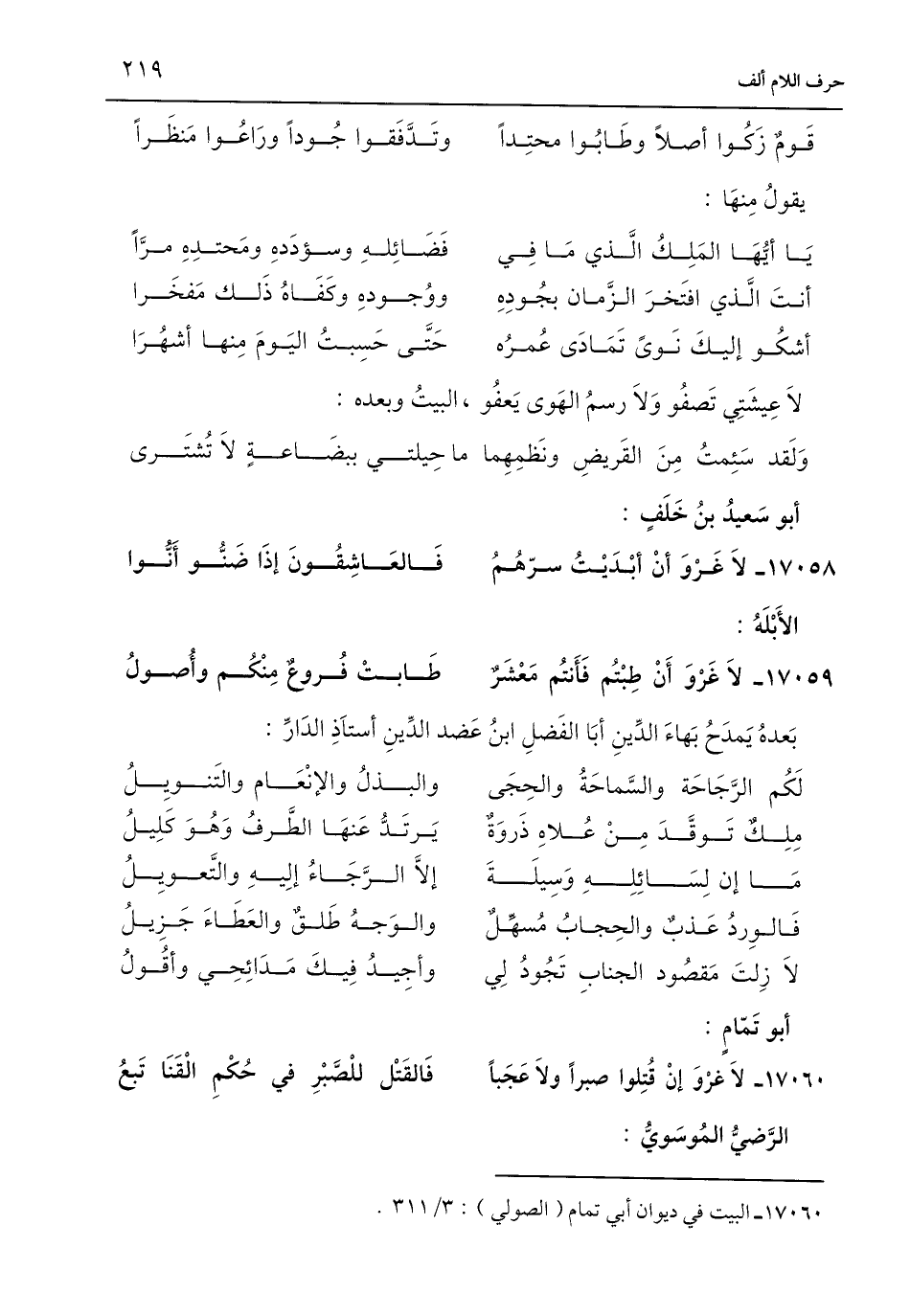 17060 - البيت في ديوان أبي تمام (الصولي): 3/ 311.