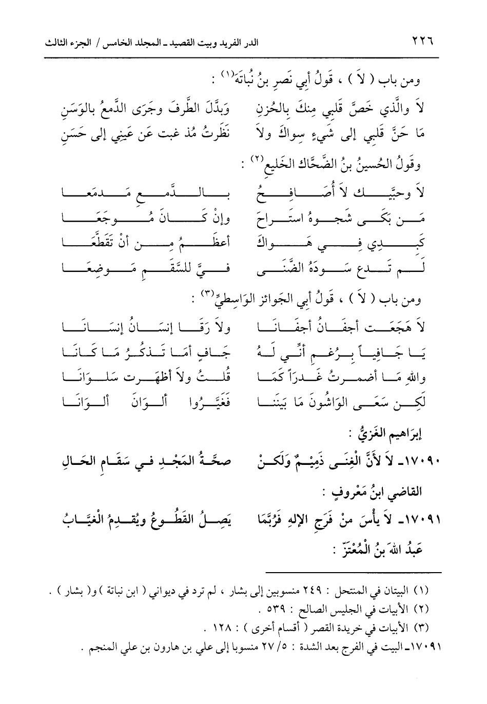 ومن باب (لَا)، قَولُ أَبِي نَصرِ بنُ نُباتَة (¬1):