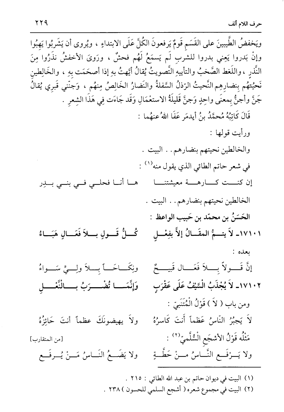 (¬1) البيت في ديوان حاتم بن عبد اللَّه الطائي: 215.