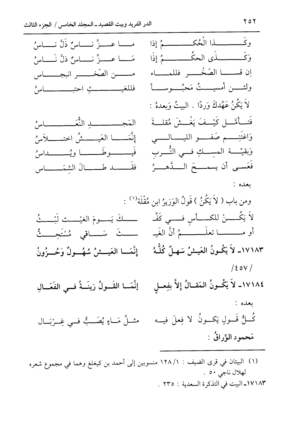 17183 - البيت في التذكرة السعدية: 235.