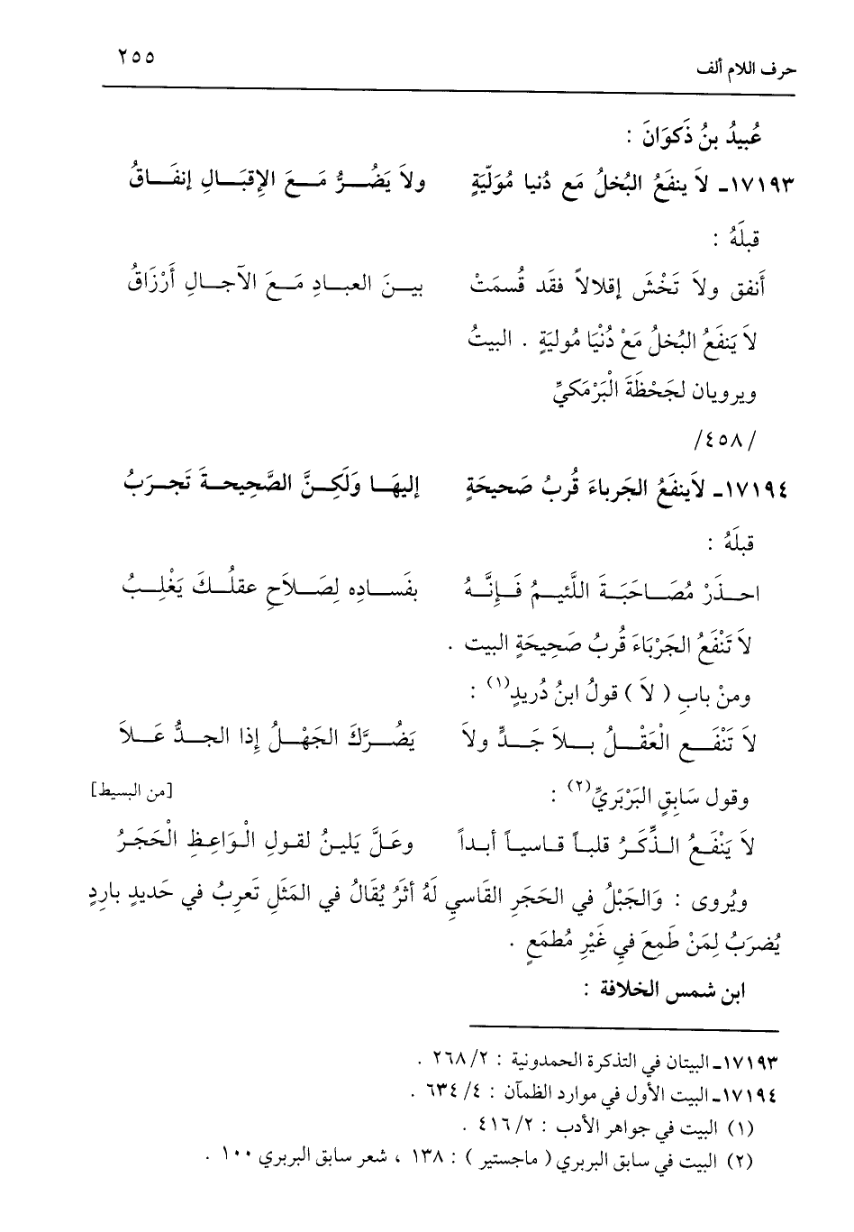 17193 - لَا ينفَعُ البُخلُ مَع دُنيا مُوَلّيَةٍ ... ولَا يَضُرُّ مَعَ الإِقبَالِ إنفَاقُ