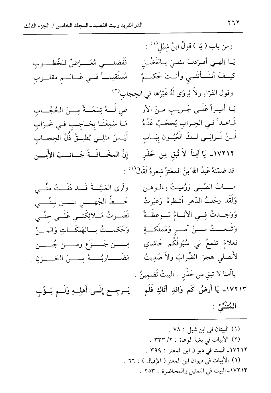 ومن باب (يَا) قولُ ابْنُ شِبْلٍ (¬1):