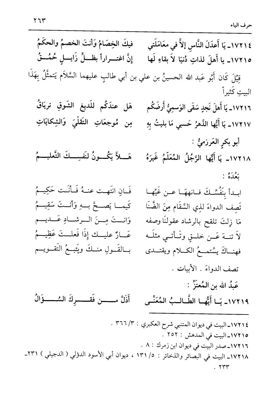 17217 - يَا أَيُّها الدَّهرُ حَسبي مَا بليتُ بِهِ ... مِن مُوجعَاتِ التَقلّيَ وَالشِكايَاتِ