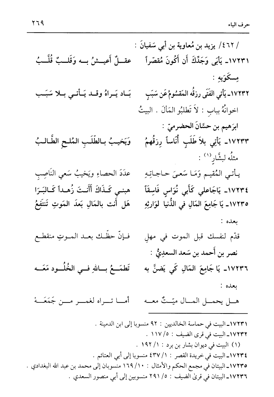 17235 - البيتان في مجمع الحكم والأمثال: 10/ 169 منسوبان إلى محمد بن عبد اللَّه البغدادي.