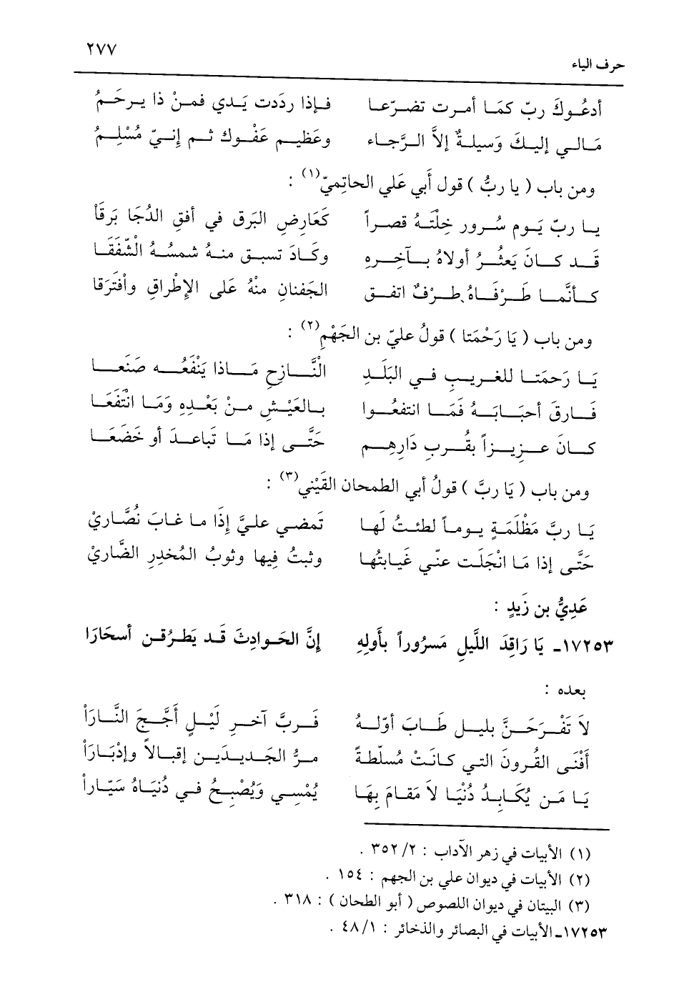 ومن باب (يا ربُّ) قول أَبِي عَلي الحاتِميّ (¬1):