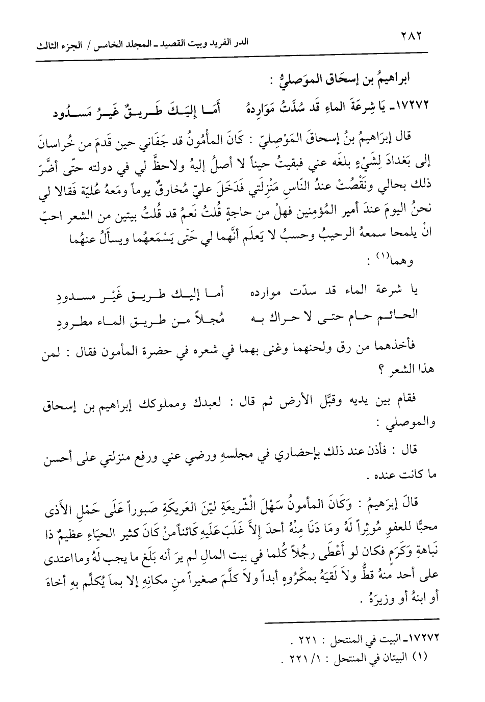 فقام بين يديه وقبَّل الأرض ثم قال: لعبدك ومملوكك إبراهيم بن إسحاق والموصلي: