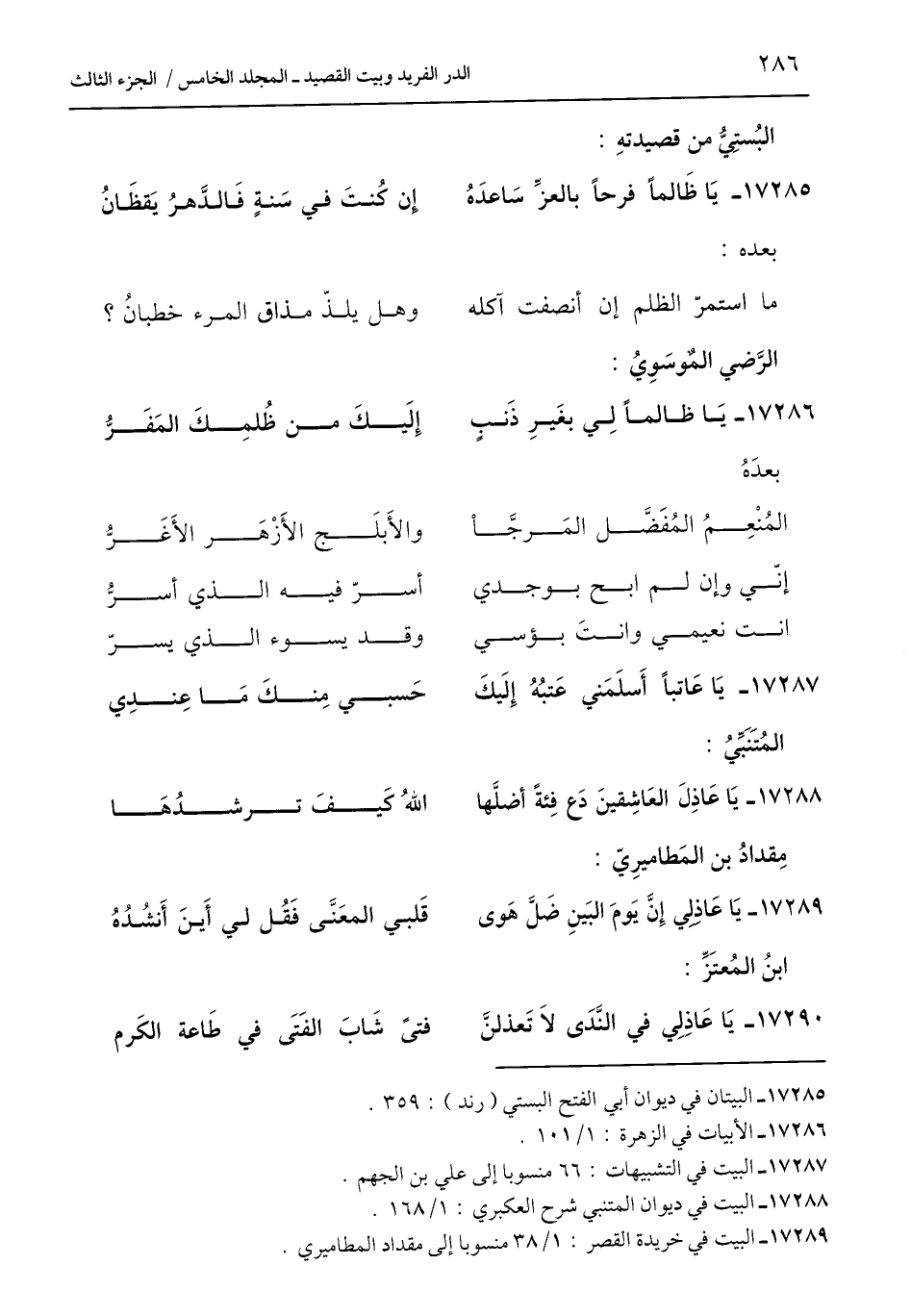 17289 - البيت في خريدة القصر: 1/ 38 منسوبًا إلى مقداد المطاميري.