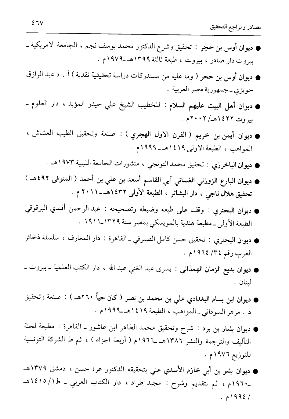 • ديوان أوس بن حجر (وما عليه من مستدركات دراسة تحقيقية نقدية) أ. د عبد الرازق حويزي - جمهورية مصر العربية.