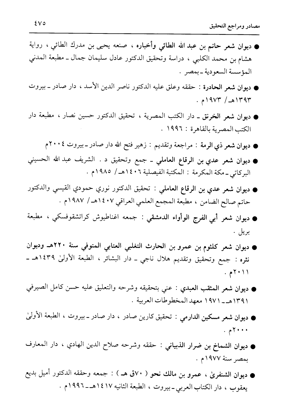 • ديوان شعر الحادرة: حققه وعلق عليه الدكتور ناصر الدين الأسد، دار صادر - بيروت 1393 هـ/ 1973 م.