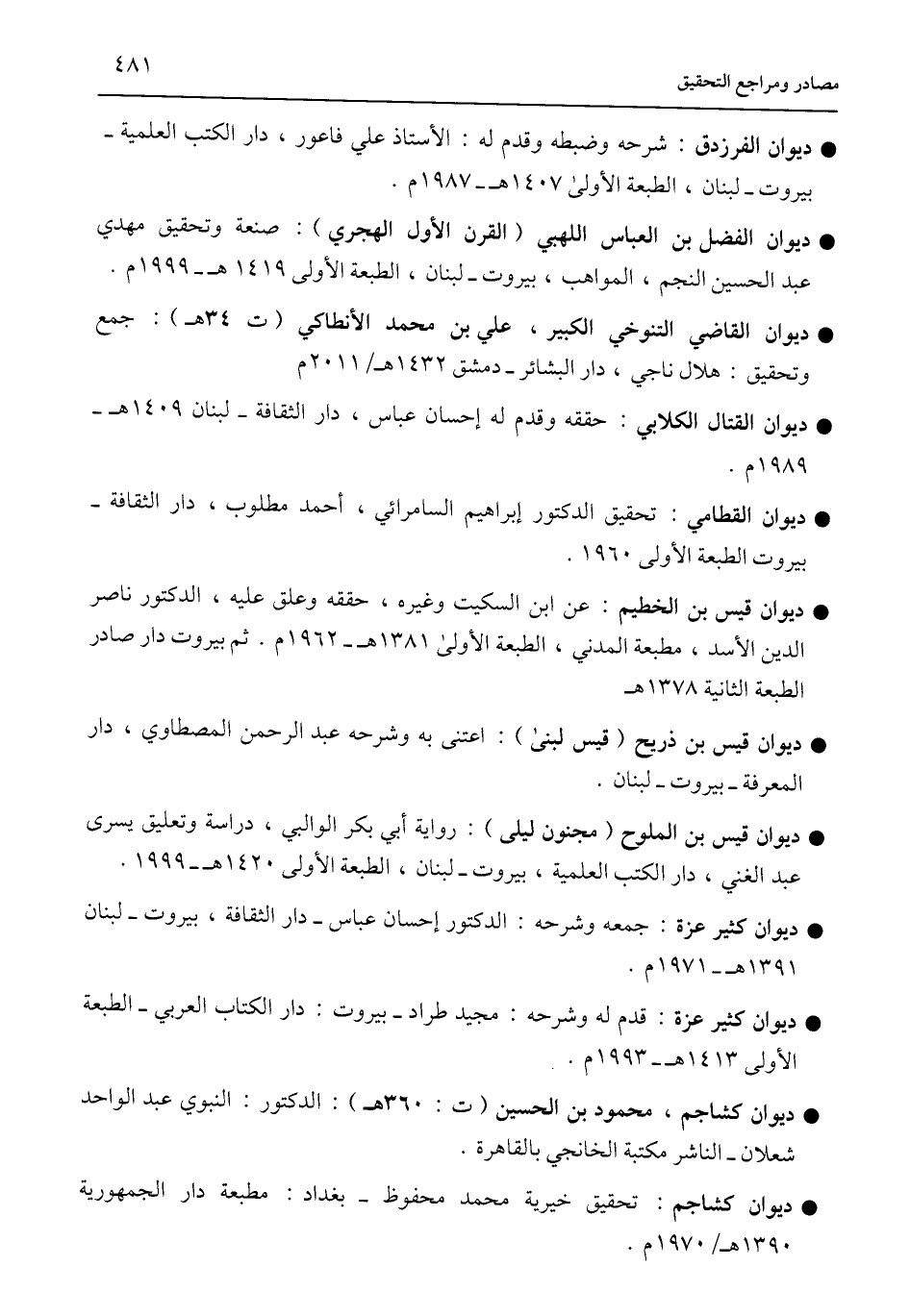 • ديوان الفرزدق: شرحه وضبطه وقدم له: الأستاذ علي فاعور، دار الكتب العلمية - بيروت - لبنان، الطبعة الأولى 1407 هـ - 1987 م.