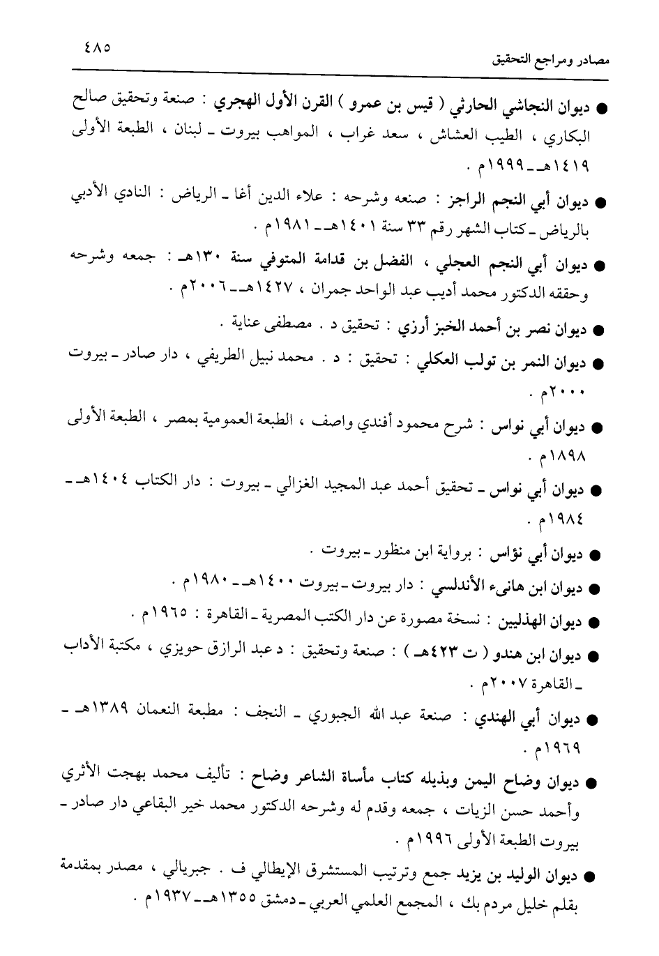 • ديوان أبي النجم العجلي، الفضل بن قدامة المتوفي سنة 130 هـ: جمعه وشرحه وحققه الدكتور محمد أديب عبد الواحد جمران، 1427 هـ - 2006 م.