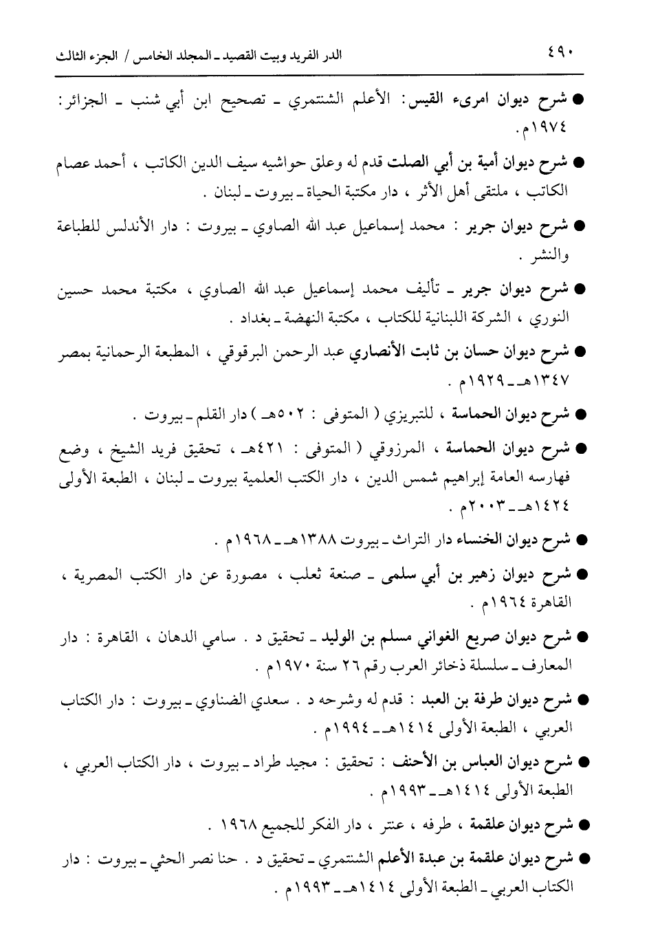 • شرح ديوان علقمة، طرفه، عنتر، دار الفكر للجميع 1968.