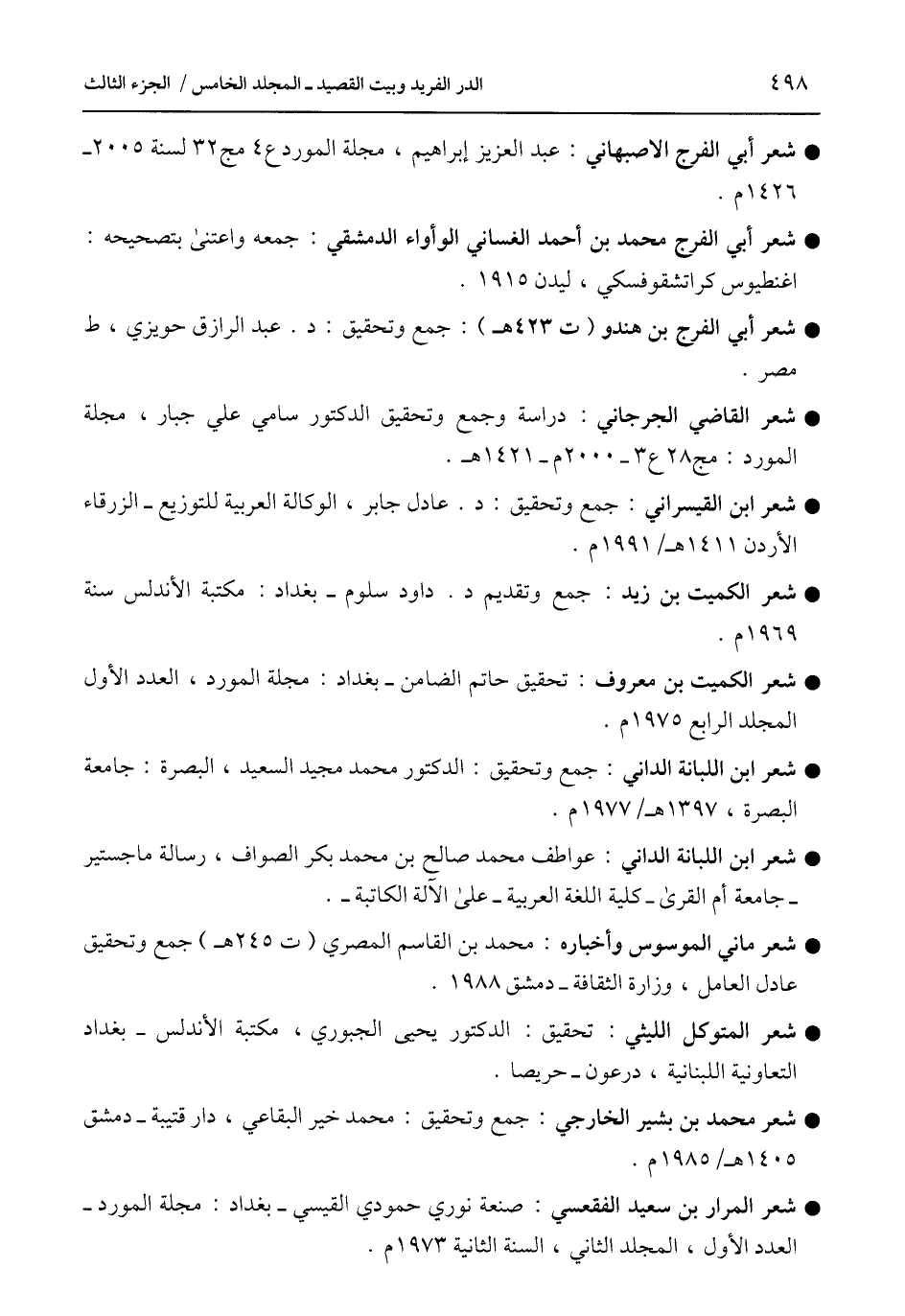 • شعر أبي الفرج الأصبهاني: عبد العزيز إبراهيم، مجلة المورد ع 4 مج 32 لسنة 2005 - 1426 م.