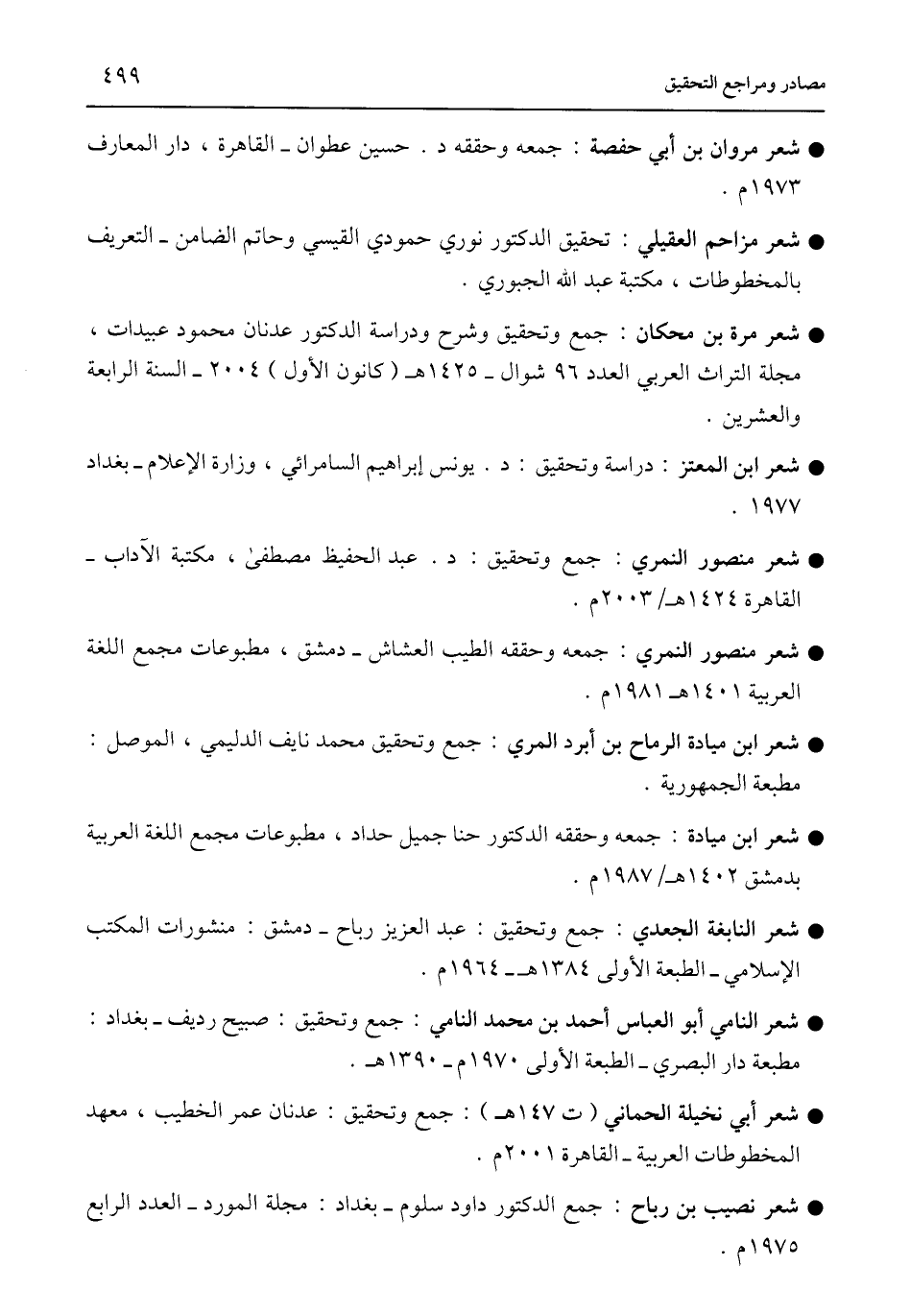 • شعر مزاحم العقيلي: ثحقيق الدكتور نوري حمودي القيسي وحاتم الضامن - التعريف بالمخطوطات، مكتبة عبد اللَّه الجبوري.