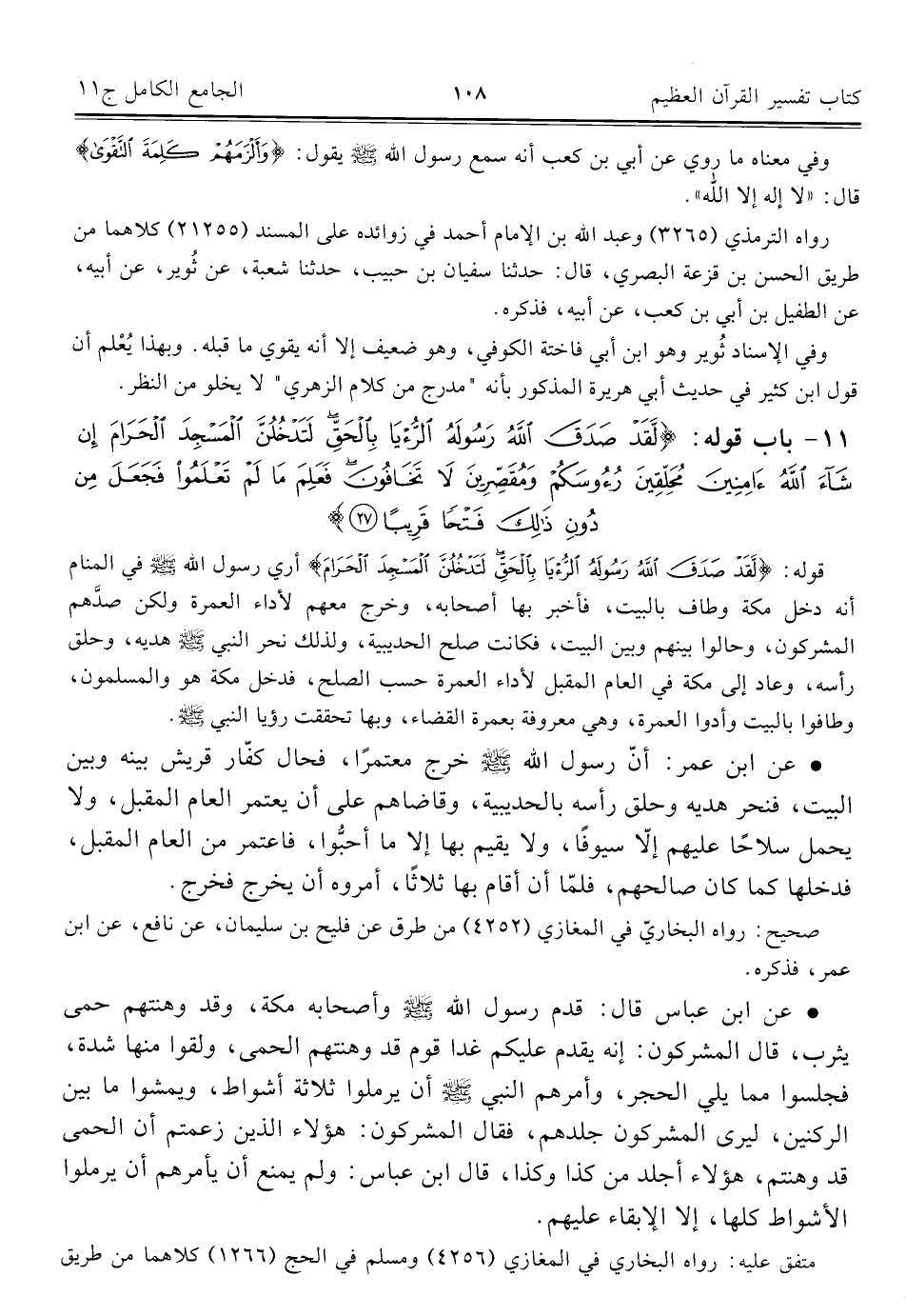 كتاب الجامع الكامل في الحديث الصحيح الشامل المرتب على أبواب الفقه (اسم الجزء: 11)