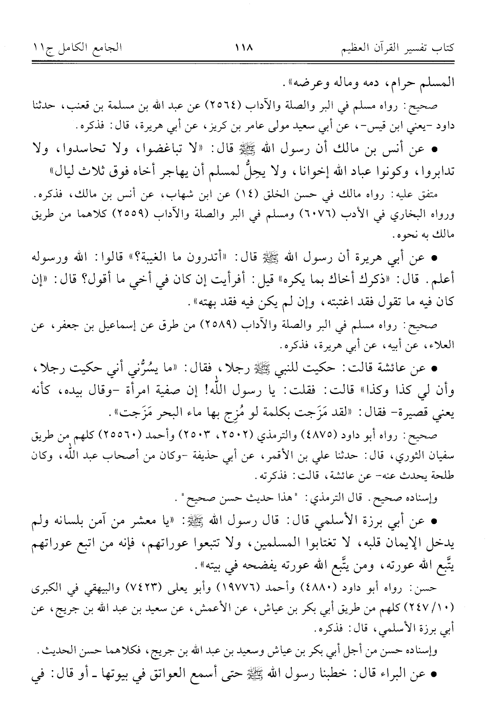 كتاب الجامع الكامل في الحديث الصحيح الشامل المرتب على أبواب الفقه (اسم الجزء: 11)