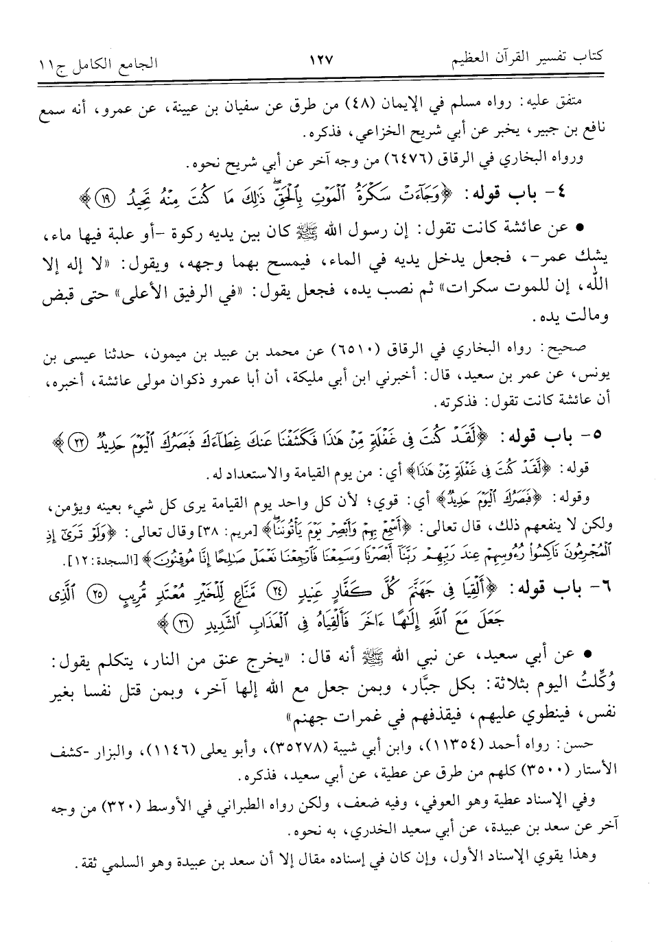 ٤ - باب قوله: {وَجَاءَتْ سَكْرَةُ الْمَوْتِ بِالْحَقِّ ذَلِكَ مَا كُنْتَ مِنْهُ تَحِيدُ (١٩)}