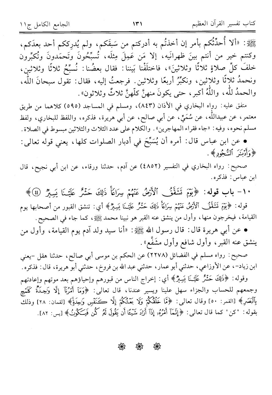 ١٠ - باب قوله: {يَوْمَ تَشَقَّقُ الْأَرْضُ عَنْهُمْ سِرَاعًا ذَلِكَ حَشْرٌ عَلَيْنَا يَسِيرٌ (٤٤)}