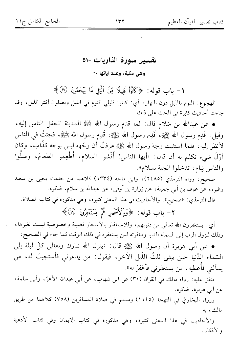 ١ - باب قوله: {كَانُوا قَلِيلًا مِنَ اللَّيْلِ مَا يَهْجَعُونَ (١٧)}