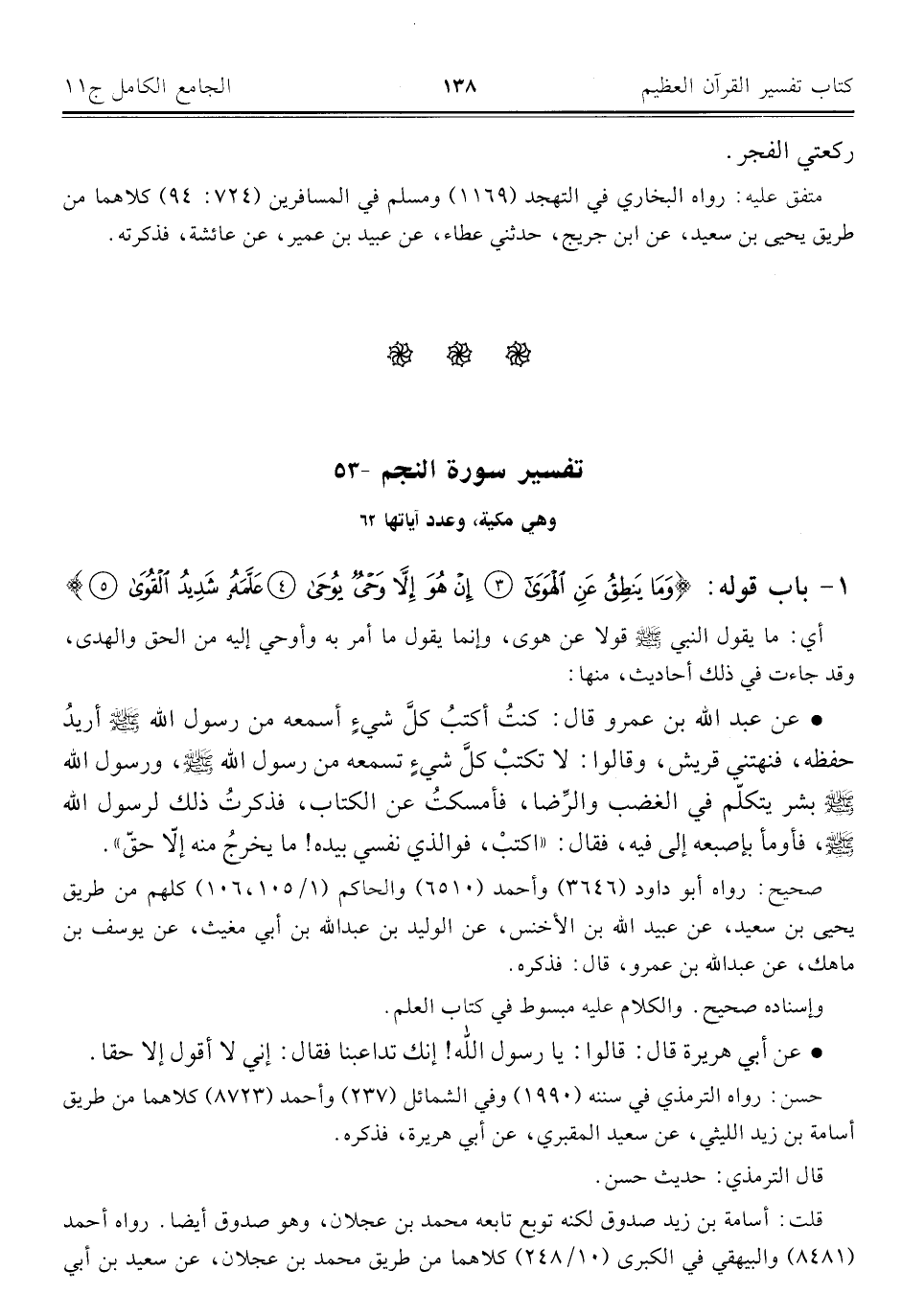 ٥٣ - تفسير سورة النجم وهي مكية، وعدد آياتها ٦٢