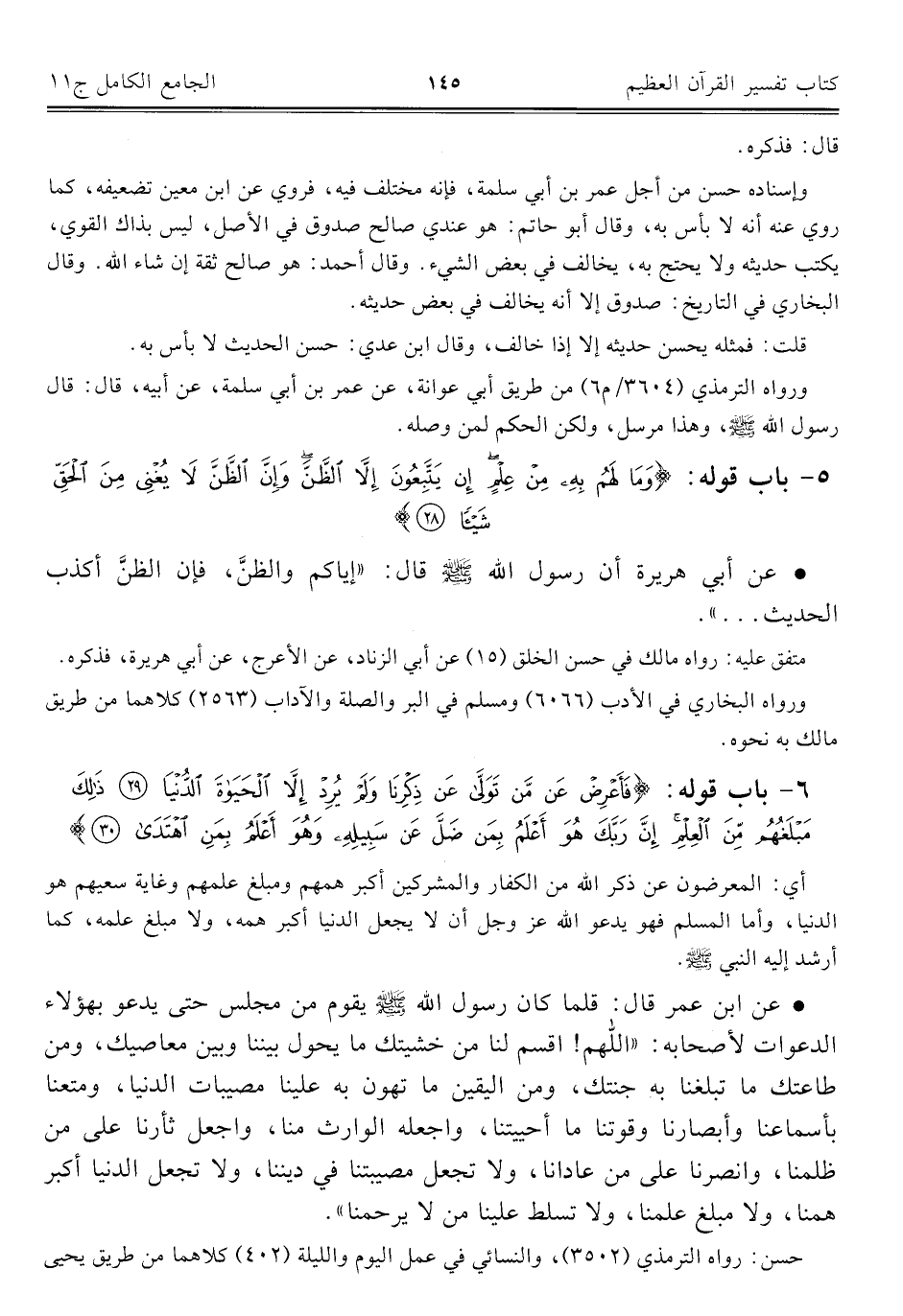 ٦ - باب قوله: {فَأَعْرِضْ عَنْ مَنْ تَوَلَّى عَنْ ذِكْرِنَا وَلَمْ يُرِدْ إِلَّا الْحَيَاةَ الدُّنْيَا (٢٩) ذَلِكَ مَبْلَغُهُمْ مِنَ الْعِلْمِ إِنَّ رَبَّكَ هُوَ أَعْلَمُ بِمَنْ ضَلَّ عَنْ سَبِيلِهِ وَهُوَ أَعْلَمُ بِمَنِ اهْتَدَى (٣٠)}