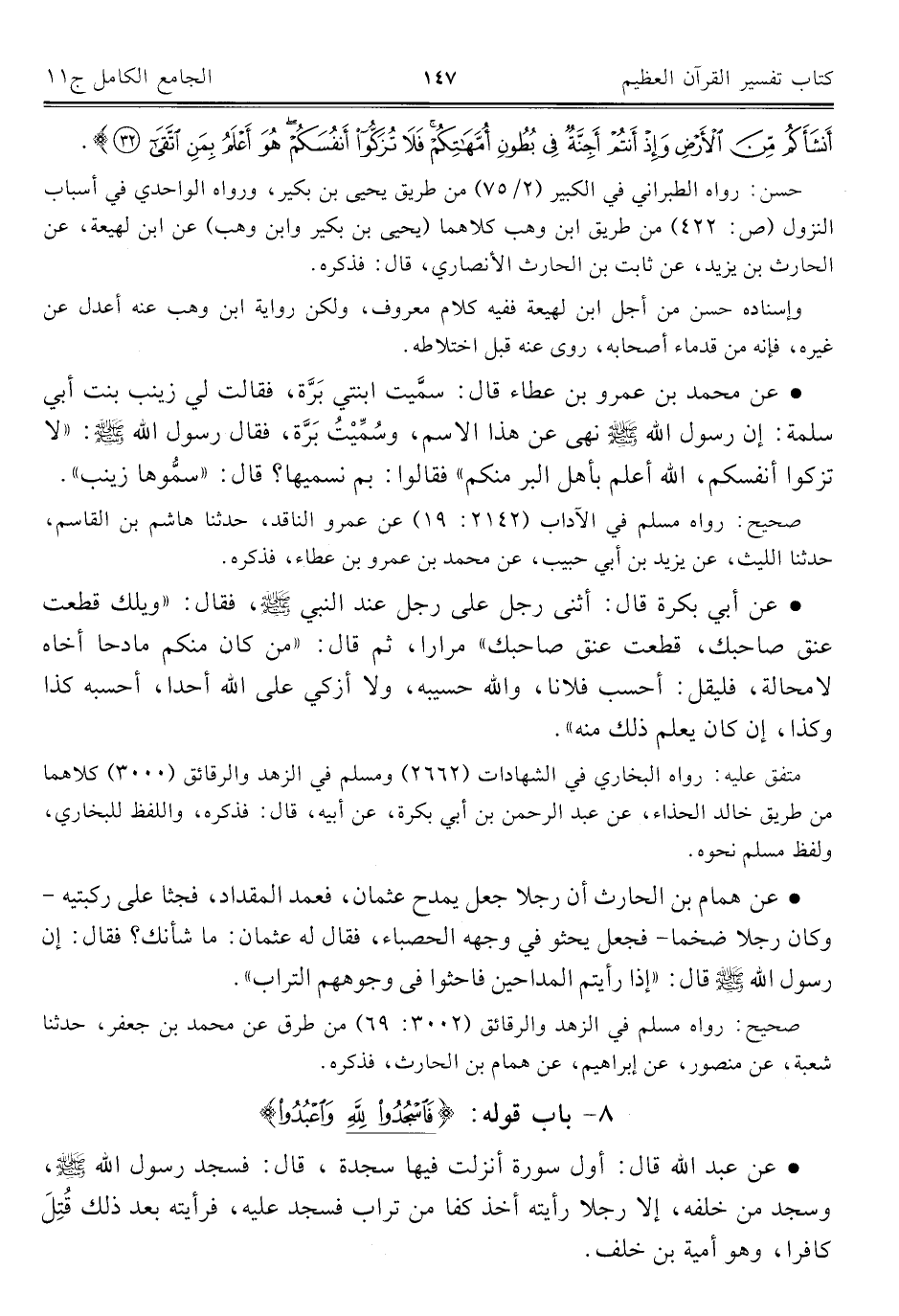 ٨ - باب قوله: {فَاسْجُدُوا لِلَّهِ وَاعْبُدُوا}