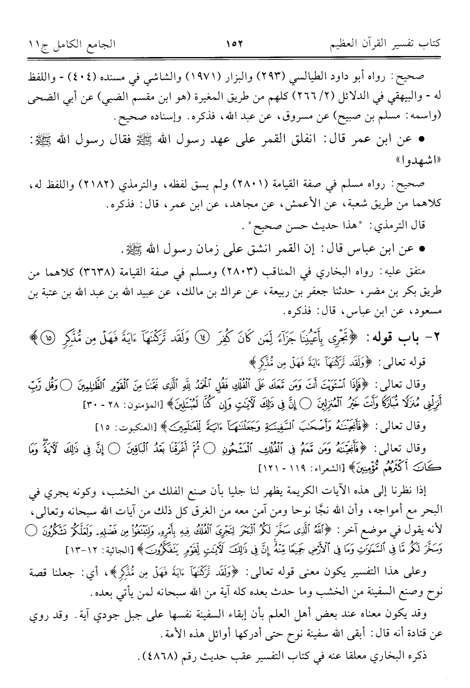 • عن ابن عمر قال: انفلق القمر على عهد رسول الله - صلى الله عليه وسلم - فقال رسول الله - صلى الله عليه وسلم -: "اشهدوا".