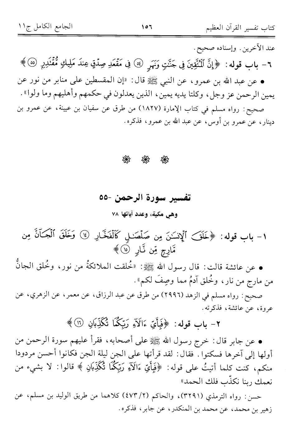 ٥٥ - تفسير سورة الرحمن وهي مكية، وعدد آياتها ٧٨