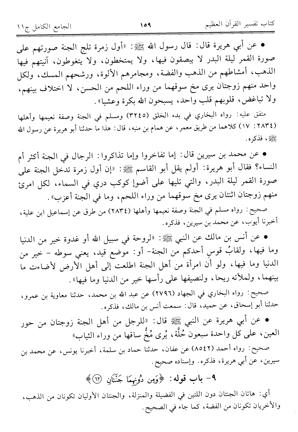 ٩ - باب قوله: {وَمِنْ دُونِهِمَا جَنَّتَانِ (٦٢)}