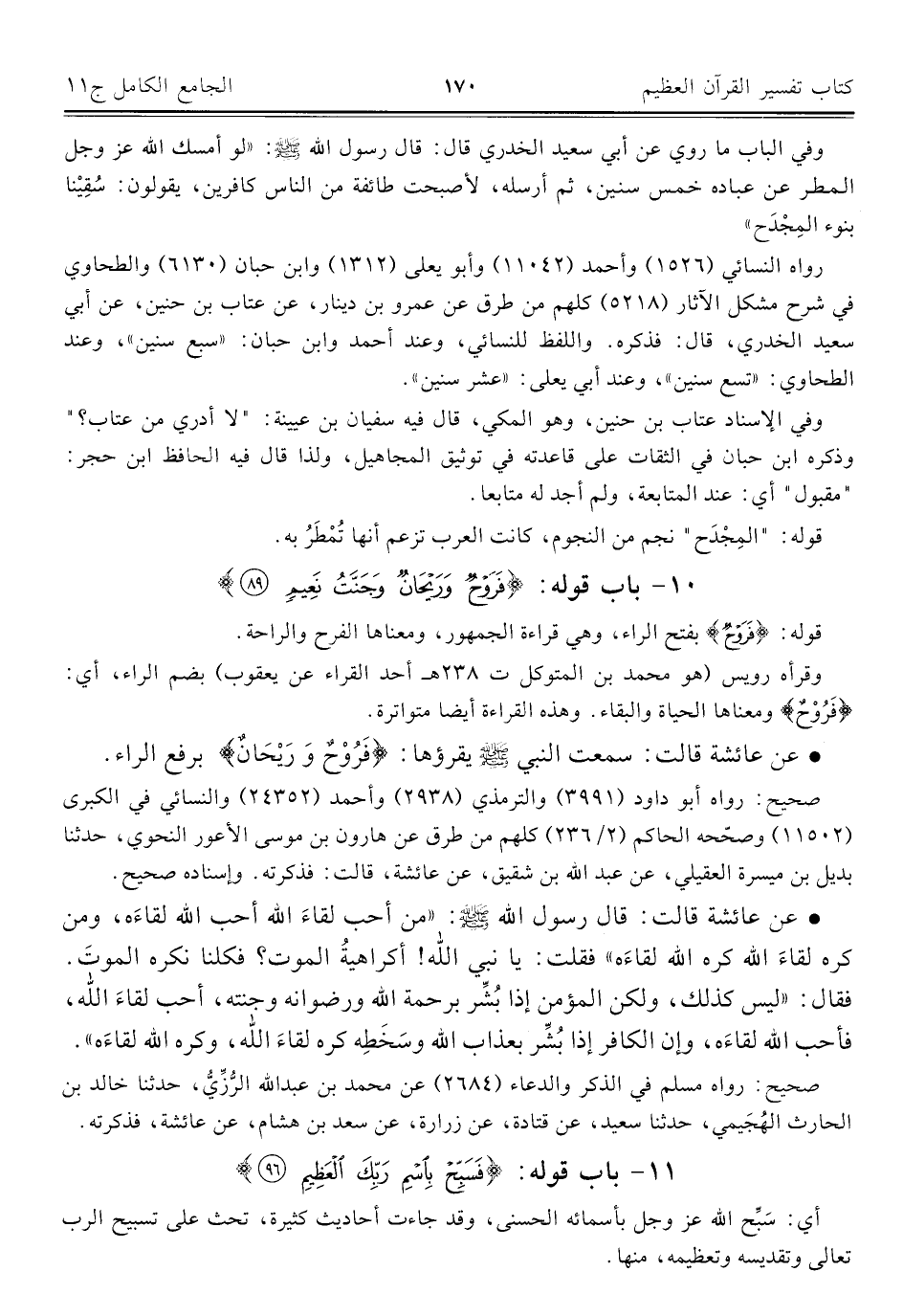١٠ - باب قوله: {فَرَوْحٌ وَرَيْحَانٌ وَجَنَّتُ نَعِيمٍ (٨٩)}
