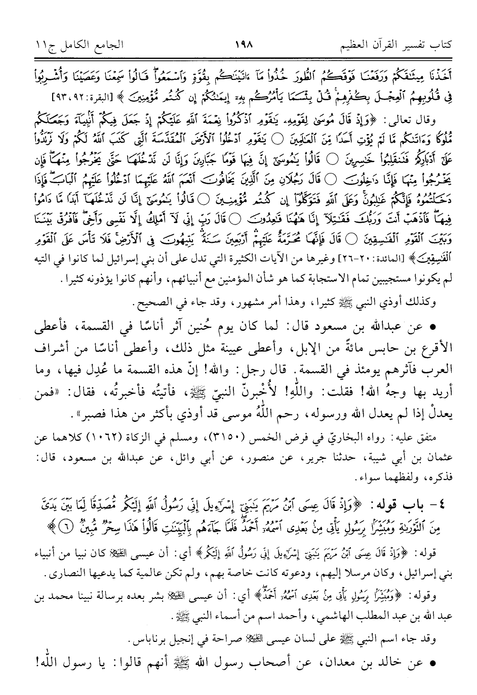 كتاب الجامع الكامل في الحديث الصحيح الشامل المرتب على أبواب الفقه (اسم الجزء: 11)