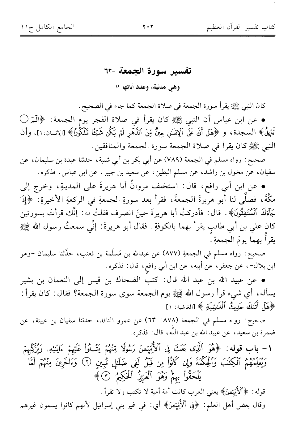 ٦٢ - تفسير سورة الجمعة وهي مدنية، وعدد آياتها ١١
