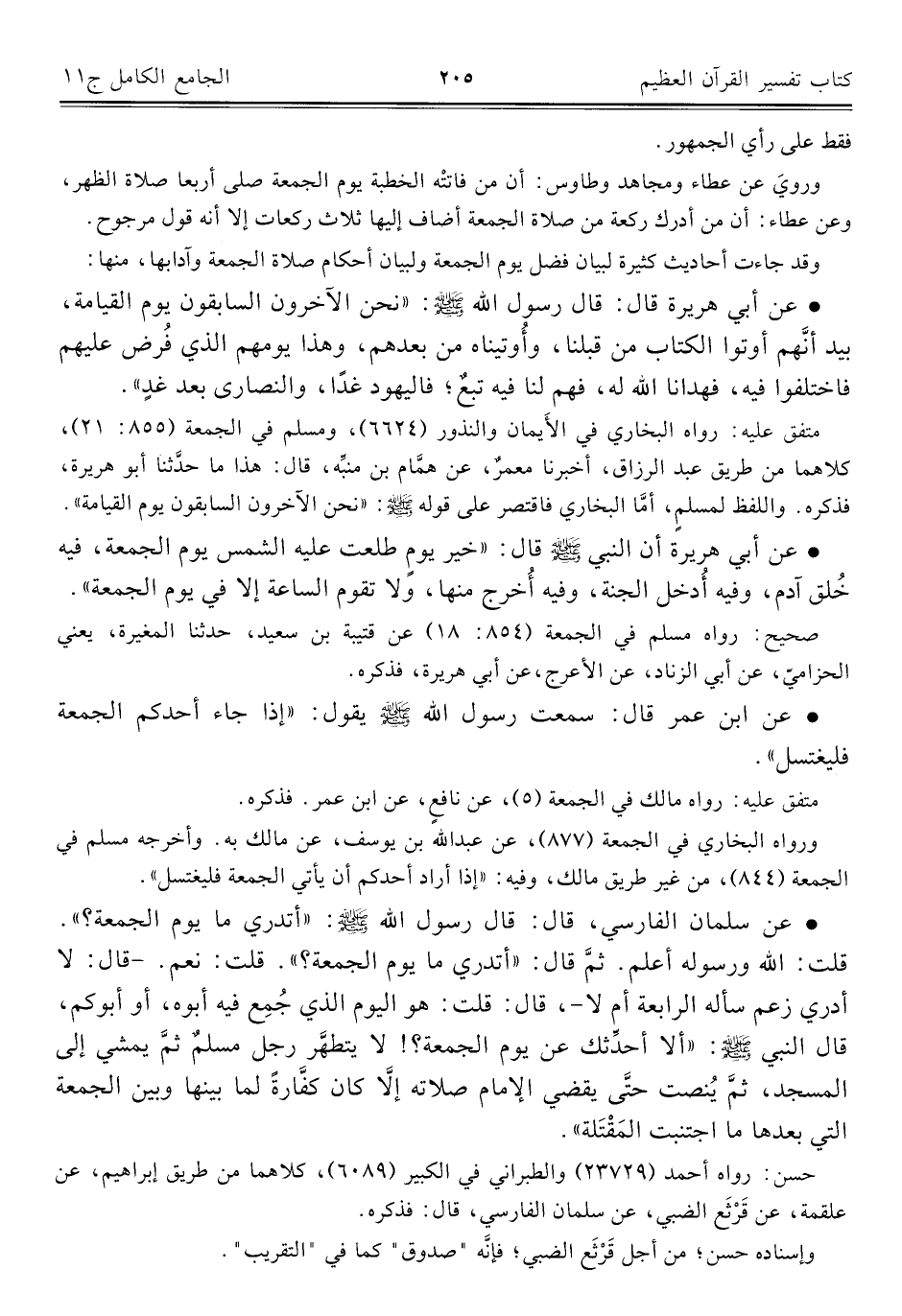 كتاب الجامع الكامل في الحديث الصحيح الشامل المرتب على أبواب الفقه (اسم الجزء: 11)