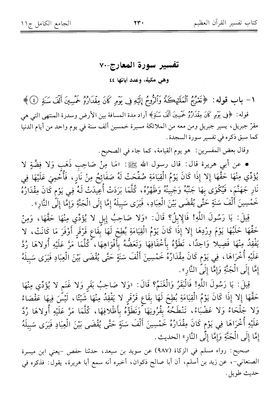 ٧٠ - تفسير سورة المعارج وهي مكية، وعدد آياتها ٤٤