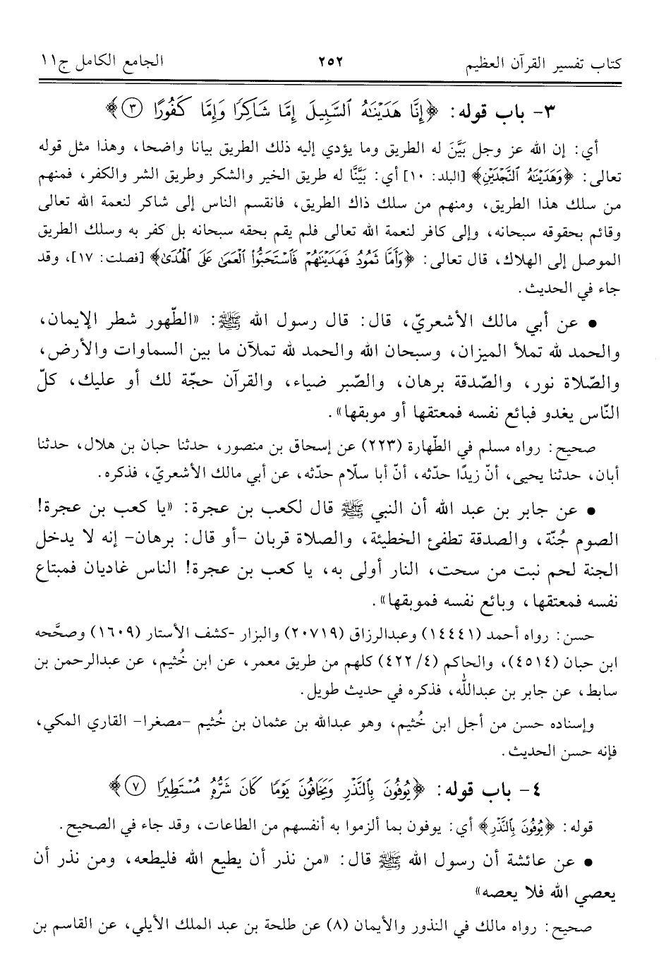 ٣ - باب قوله: {إِنَّا هَدَيْنَاهُ السَّبِيلَ إِمَّا شَاكِرًا وَإِمَّا كَفُورًا (٣)}