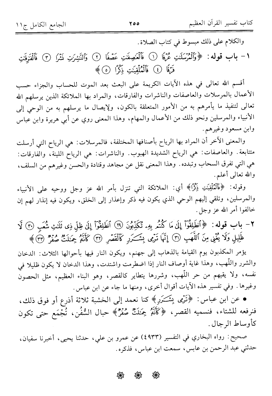 ١ - باب قوله: {وَالْمُرْسَلَاتِ عُرْفًا (١) فَالْعَاصِفَاتِ عَصْفًا (٢) وَالنَّاشِرَاتِ نَشْرًا (٣) فَالْفَارِقَاتِ فَرْقًا (٤) فَالْمُلْقِيَاتِ ذِكْرًا (٥)}