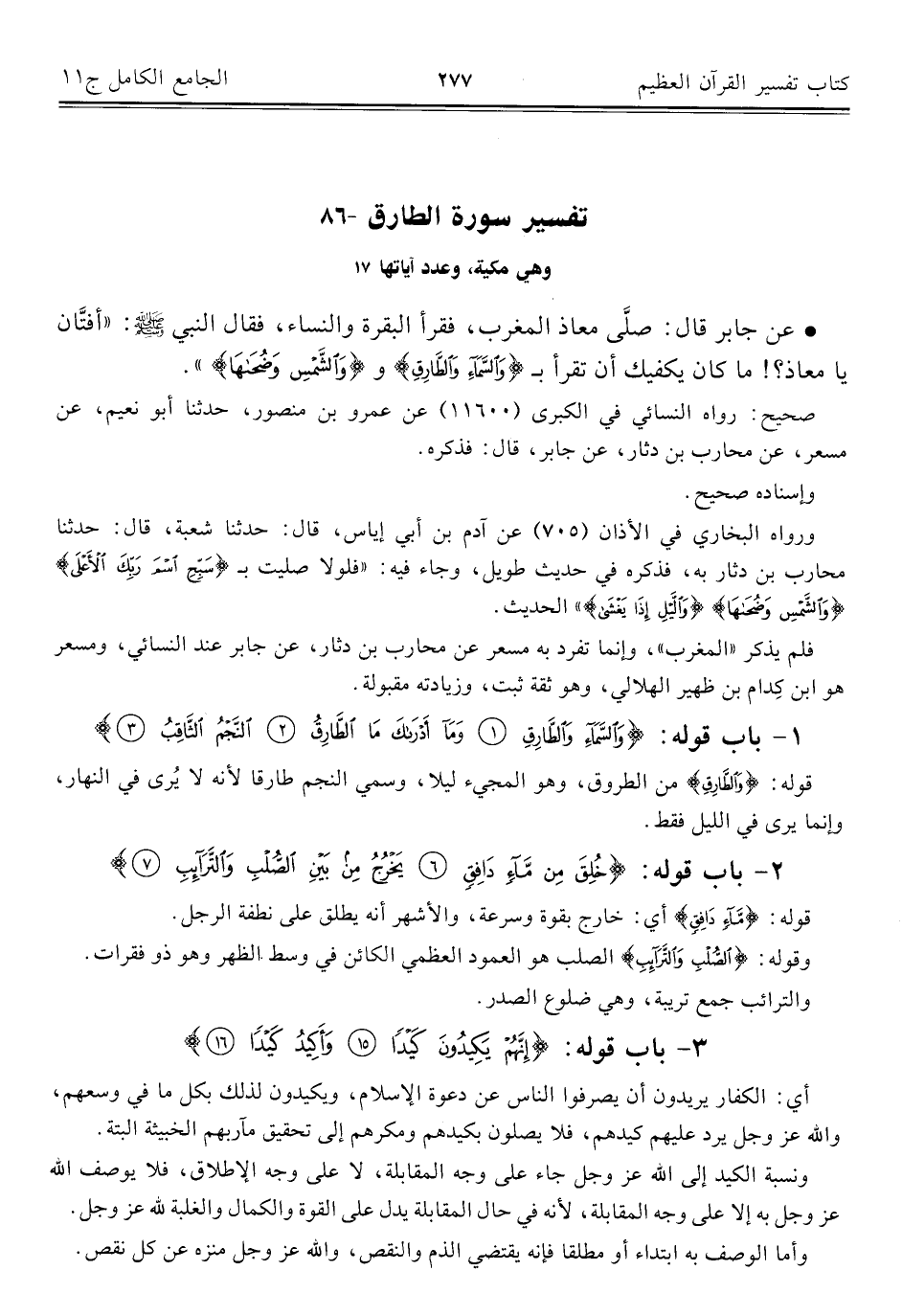 ٨٦ - تفسير سورة الطارق وهي مكية، وعدد آياتها ١٧