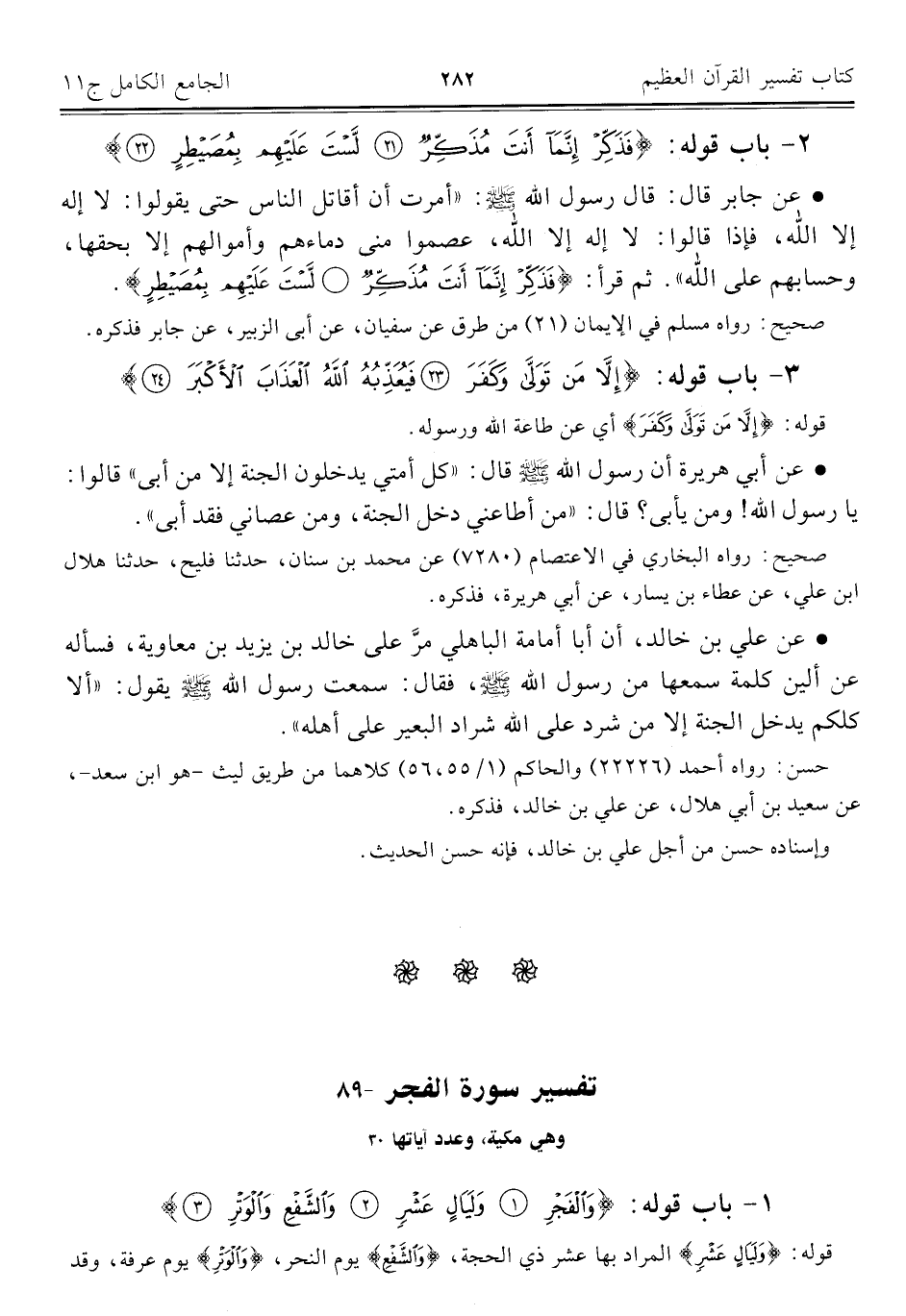 ٨٩ - تفسير سورة الفجر وهي مكية، وعدد آياتها ٣٠