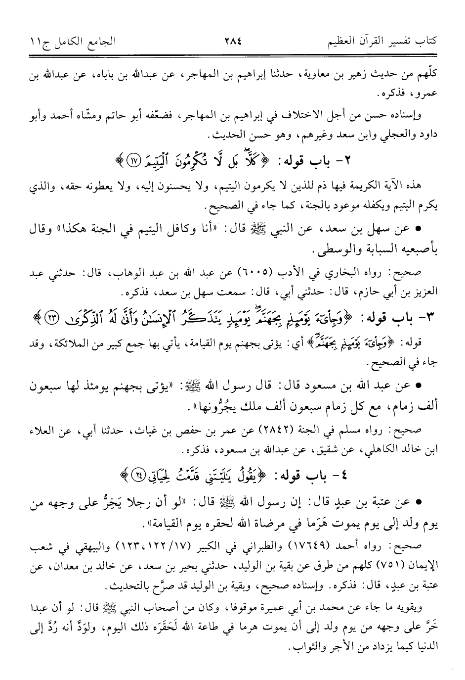 كتاب الجامع الكامل في الحديث الصحيح الشامل المرتب على أبواب الفقه (اسم الجزء: 11)