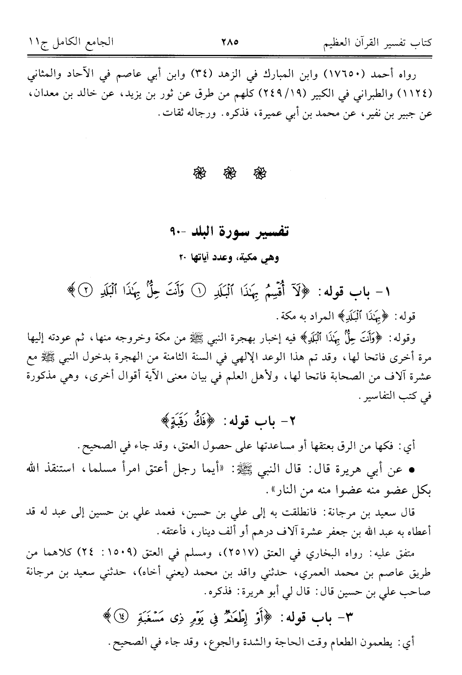 ٩٠ - تفسير سورة البلد وهي مكية، وعدد آياتها ٢٠