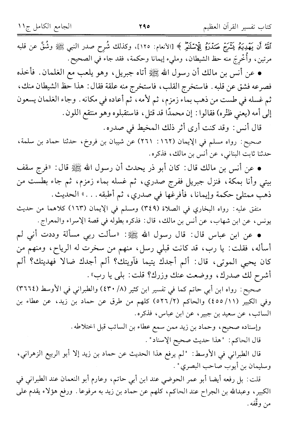 اللَّهُ أَنْ يَهْدِيَهُ يَشْرَحْ صَدْرَهُ لِلْإِسْلَامِ} [الأنعام: ١٢٥]، وكذلك شُرِح صدر النبي - صلى الله عليه وسلم - وشُقَّ عن قلبه مرتين، وأُخْرِجَ منه حظ الشيطان، ومليء إيمانا وحكمة، فقد جاء في الصحيح.