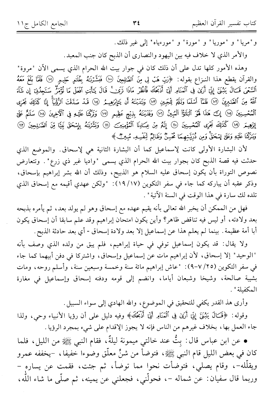 وهذه الأمور كلها تدل على أن ذلك كان في جوار بيت الله الحرام الذي يسمى الآن "مروة" والقرآن يقطع هذا النزاع بقوله: {رَبِّ هَبْ لِي مِنَ الصَّالِحِينَ (١٠٠) فَبَشَّرْنَاهُ بِغُلَامٍ حَلِيمٍ (١٠١) فَلَمَّا بَلَغَ مَعَهُ السَّعْيَ قَالَ يَابُنَيَّ إِنِّي أَرَى فِي الْمَنَامِ أَنِّي أَذْبَحُكَ فَانْظُرْ مَاذَا تَرَى قَالَ يَاأَبَتِ افْعَلْ مَا تُؤْمَرُ سَتَجِدُنِي إِنْ شَاءَ اللَّهُ مِنَ الصَّابِرِينَ (١٠٢) فَلَمَّا أَسْلَمَا وَتَلَّهُ لِلْجَبِينِ (١٠٣) وَنَادَيْنَاهُ أَنْ يَاإِبْرَاهِيمُ (١٠٤) قَدْ صَدَّقْتَ الرُّؤْيَا إِنَّا كَذَلِكَ نَجْزِي الْمُحْسِنِينَ (١٠٥) إِنَّ هَذَا لَهُوَ الْبَلَاءُ الْمُبِينُ (١٠٦) وَفَدَيْنَاهُ بِذِبْحٍ عَظِيمٍ (١٠٧) وَتَرَكْنَا عَلَيْهِ فِي الْآخِرِينَ (١٠٨) سَلَامٌ عَلَى إِبْرَاهِيمَ (١٠٩) كَذَلِكَ نَجْزِي الْمُحْسِنِينَ (١١٠) إِنَّهُ مِنْ عِبَادِنَا الْمُؤْمِنِينَ (١١١) وَبَشَّرْنَاهُ بِإِسْحَاقَ نَبِيًّا مِنَ الصَّالِحِينَ (١١٢) وَبَارَكْنَا عَلَيْهِ وَعَلَى إِسْحَاقَ وَمِنْ ذُرِّيَّتِهِمَا مُحْسِنٌ وَظَالِمٌ لِنَفْسِهِ مُبِينٌ (١١٣)}.
