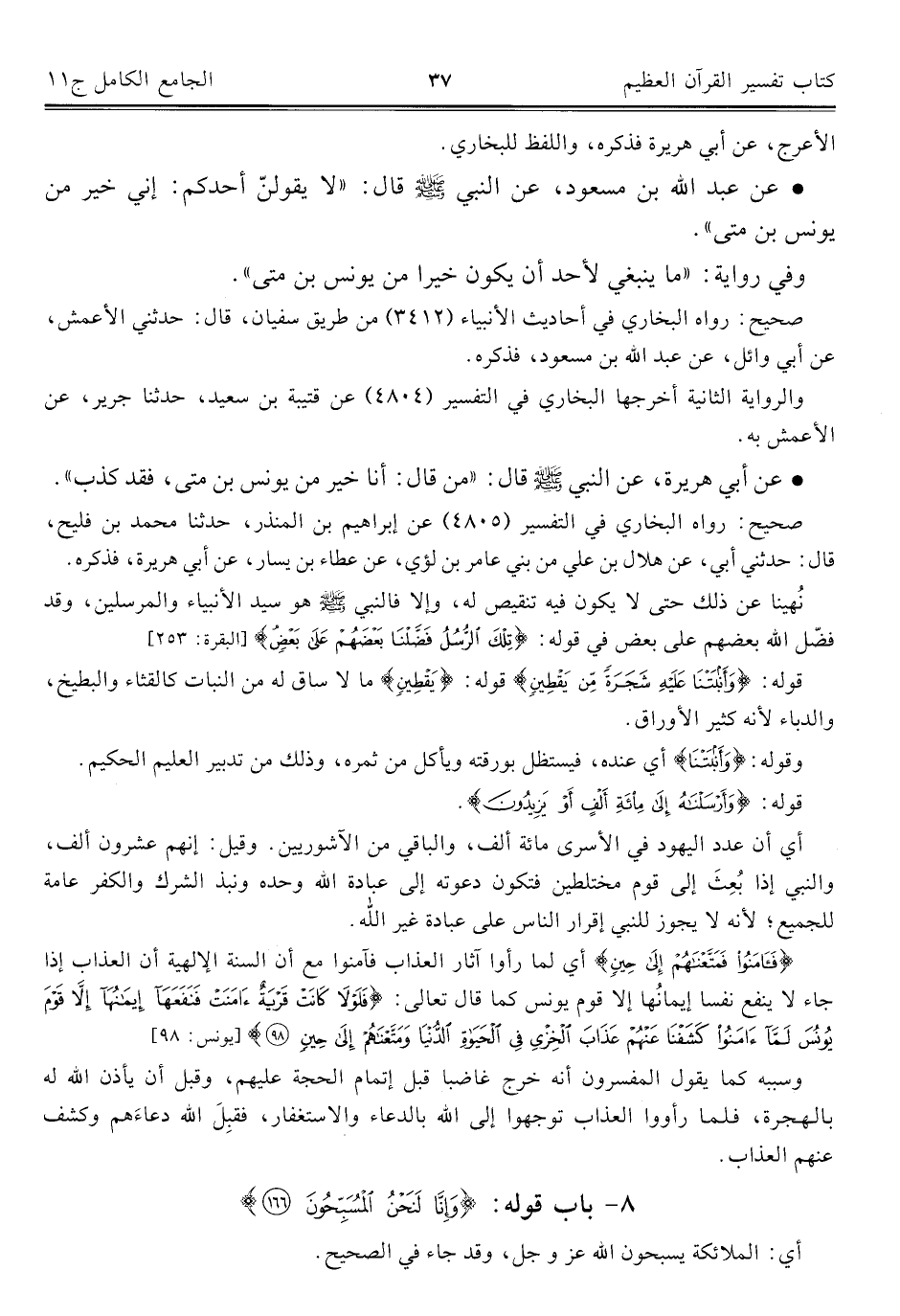 قوله: {وَأَرْسَلْنَاهُ إِلَى مِائَةِ أَلْفٍ أَوْ يَزِيدُونَ}.