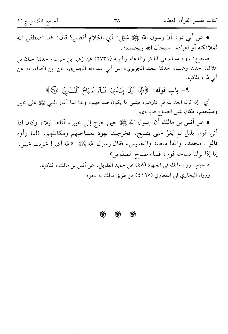 كتاب الجامع الكامل في الحديث الصحيح الشامل المرتب على أبواب الفقه (اسم الجزء: 11)