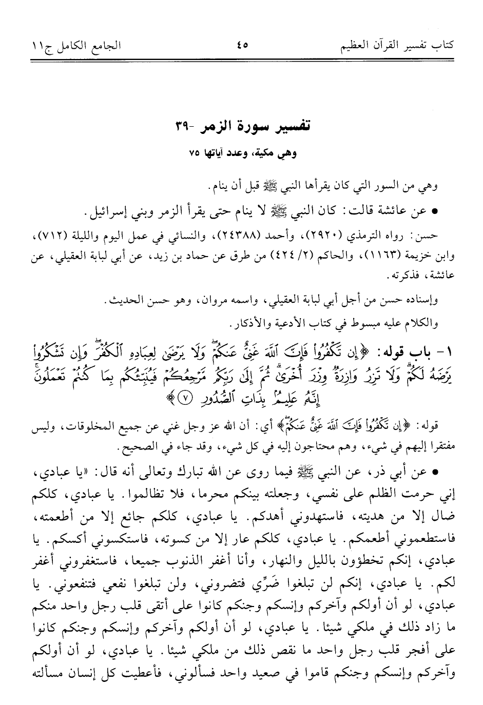 ٣٩ - تفسير سورة الزمر وهي مكية، وعدد آياتها ٧٥