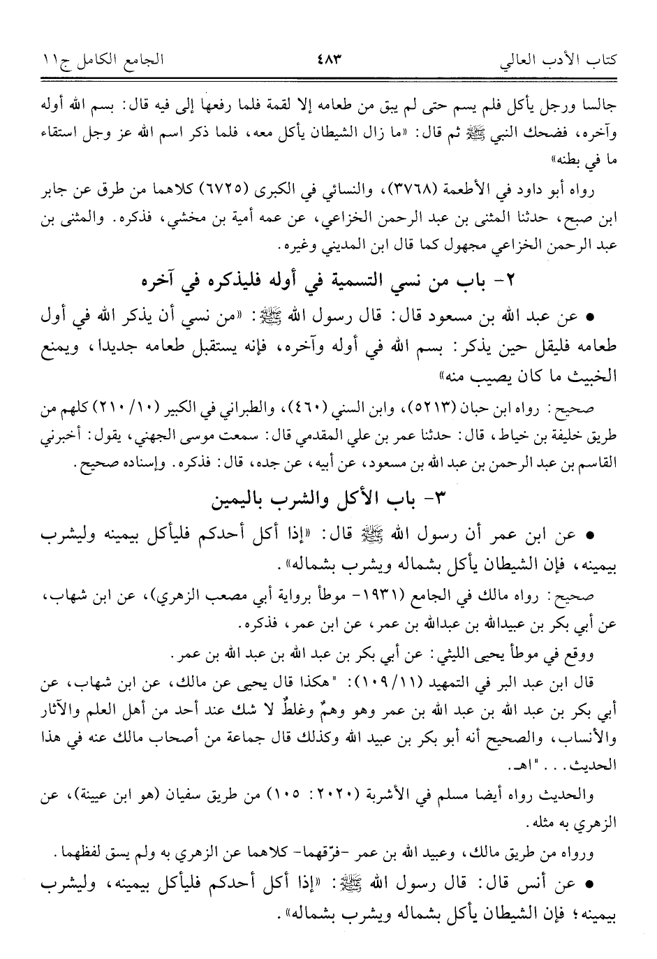 ٣ - باب الأكل والشرب باليمين