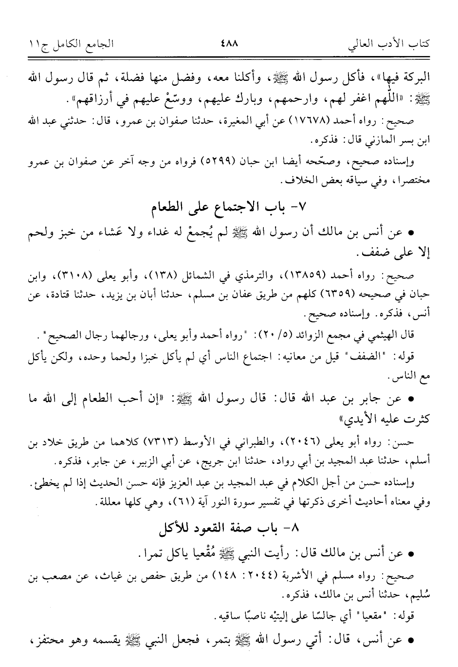 كتاب الجامع الكامل في الحديث الصحيح الشامل المرتب على أبواب الفقه (اسم الجزء: 11)