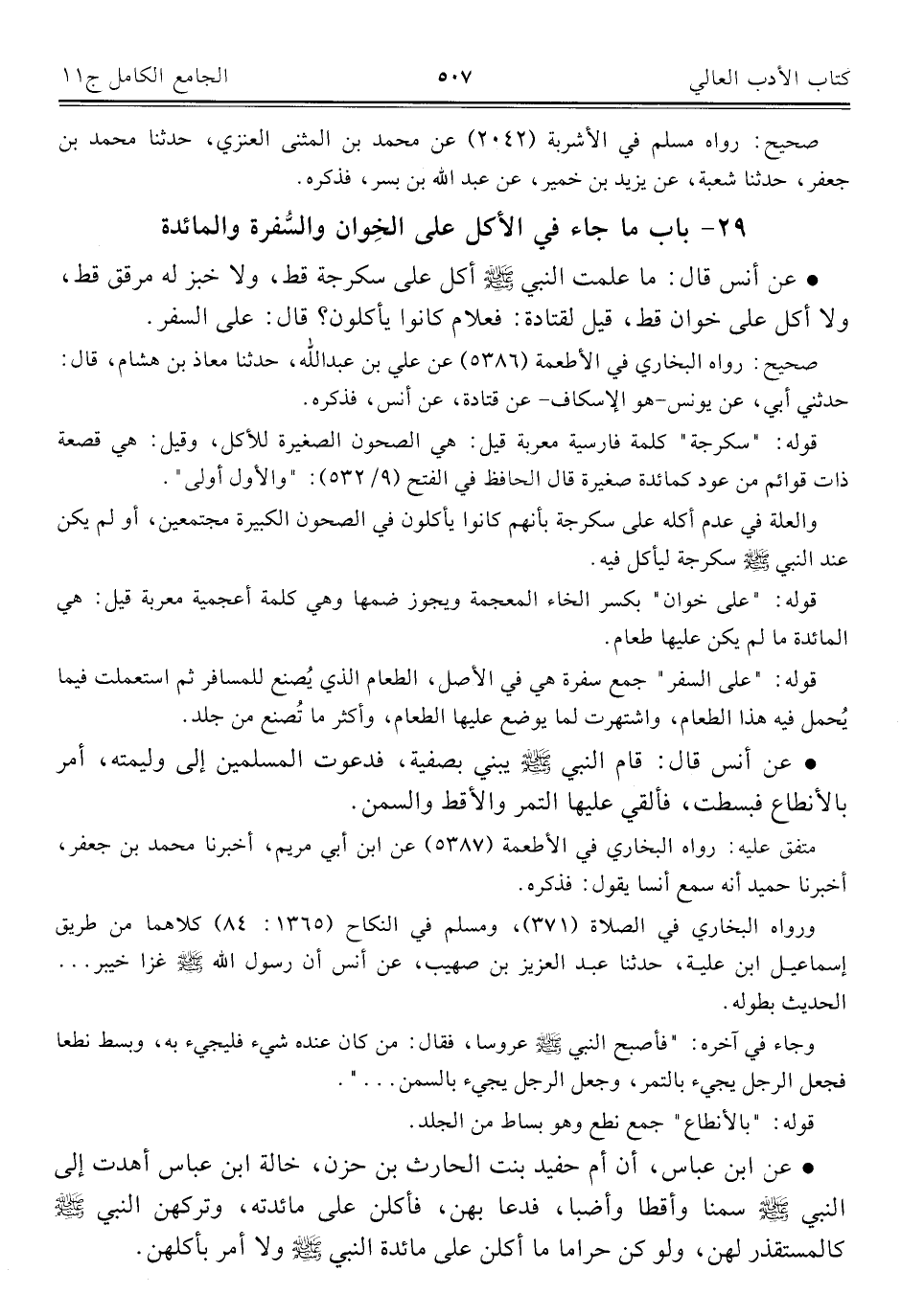 ٢٩ - باب ما جاء في الأكل على الخِوان والسُّفرة والمائدة
